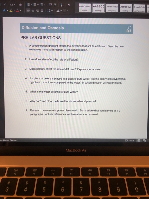 Lab 6 Diffusion Pre Lab Questions A Concentration Gradient Affects The Direction That Solutes Studocu